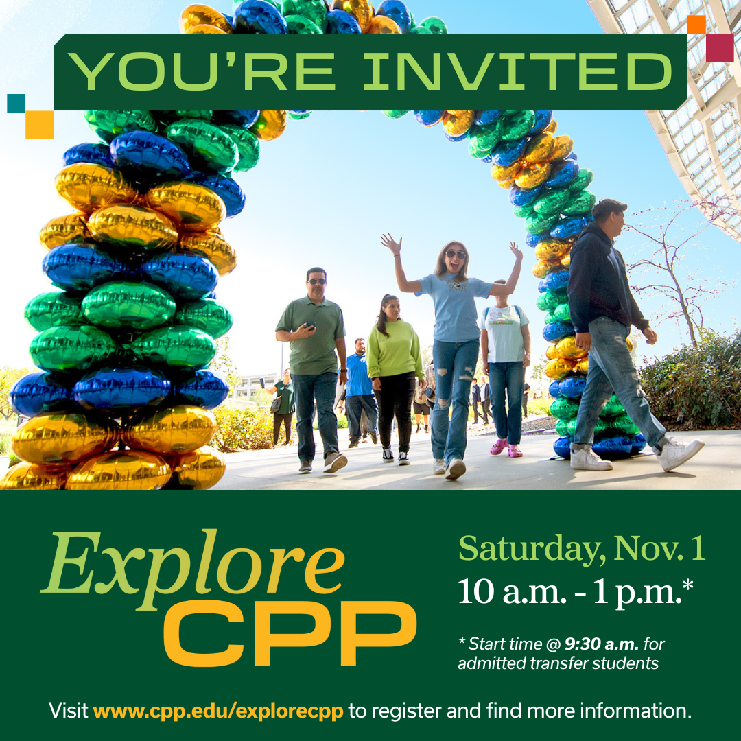 Participants are highly recommended to register before attending event. Register here: https://www.cpp.edu/explorecpp/